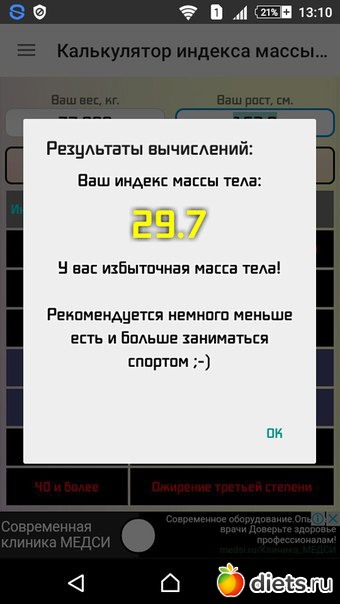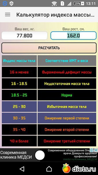 Далее возвращаемся назад, и просто из любопытства смотрим наш Индекс массы тела