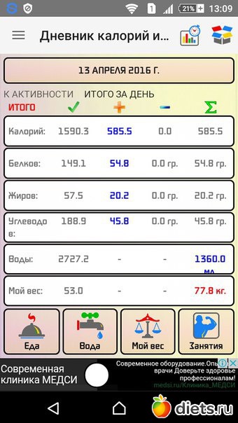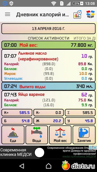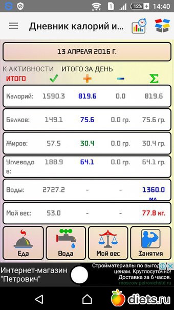 Вводим все внимательно, т.к. на калории это все очень влияет!