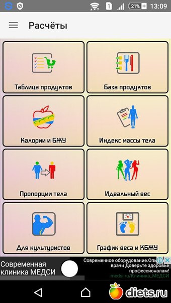 А чтобы это все рассчитать, по ккал и бжу, заходим в Расчеты