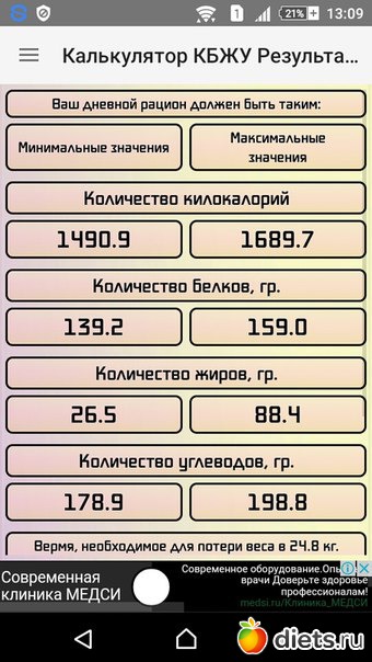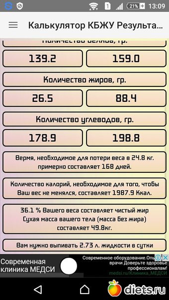 Листаем в лево и видим норму, какая должна быть в день, это средний показатель!