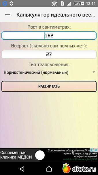 Ворачиваемся и чисто из любопытства заходим в Идеальный вес