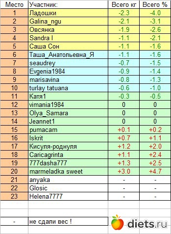 Мне нравиться отчитываться раз в неделю, это вроде контролирует тебя от перееданий, особенно когда сидишь вечером и думаешь чтобы схавать полезное или вредное или вообще от еды отказаться ....одним словом хочу сказать, "Спасибо клубу",