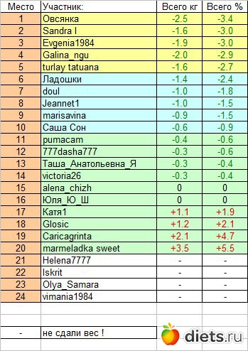Наши результаты за последние 2 недели, точнее результаты "всего" сколько скинуто от начала марафона: