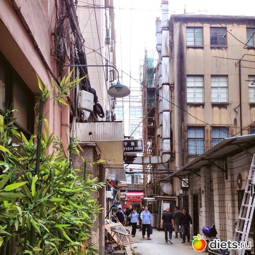 ...на фоне невероятнейших высоток, вот такой вот закоулок с трусами, как мужскими, так и женскими, с продажей зелени и рыбы,одновременно ремонтом их электро-мопедов с фактурным дедушкой, который разбрасывает отвертки и ключи по всей улице , писающий мужчина в вечернее время, тут обычное дело ..."