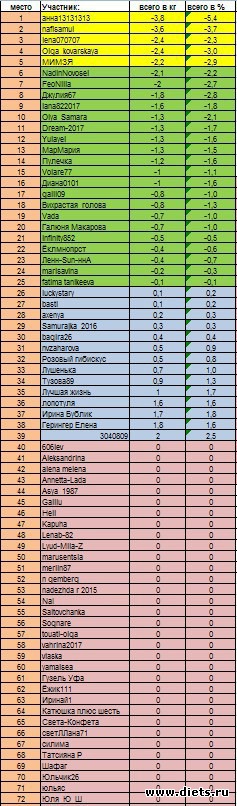 Поздравляю всех Стройняшек, с хорошими результатами. Продолжаем работать над собой.