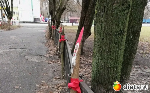 Вот, такая аллея "новогодних кольев" у нас то же есть. Причем около центральной елки одного из районов. Чем обернется это в новогоднюю ночь, когда у некоторых вместо мозга алкоголь и бравада???
