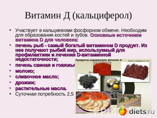 Д3 (холекальциферол). Организм получает его двумя путями. Во-первых, он образуется в коже человека из холестерина при освещении ультрафиолетовыми лучами. Во-вторых, попадает в организм с пищей животного происхождения. В растительных продуктах этот компонент не содержится.
