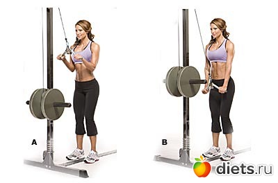 Делая это упражнение, он максимально напрягает трицепс, большую и малую грудную мышцу, а также дельты, основной задачей которых является формирование рельефа верхней части тела. Обычно упражнение используется в комплексе с жимом гантелей или штанги на горизонтальной скамье.