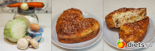 У меня количество продуктов для маленькой формочки, порция около 300 гр, потому что муж капустные пироги не любит, а собаке нельзя)