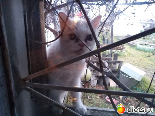Пока мы были в санатории, у нас на даче, появился квартирант. Нашел дырку в сарае, когда то давно у нас там проводил дачный период, домашний кот и муж ее делал для него и поселился в этом сарае. Да такой смешной, я таких еще не видела. Под глазами два черных пятна, сначала думала грязь, посмотрела внимательно - нет, пятнышки.