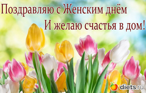 Девочки, с праздником Весны, с 8 Марта!! Желаю всем укрепления здоровья и исполнения всех ваших желаний сегодня и всегда!!!