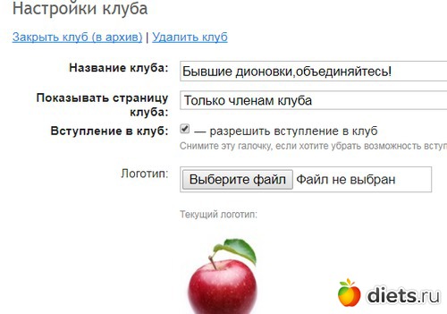 Клуб создан для бывших дионовок.почившего сайта. Для общения и обмена опытом похудения. В последствие можно будет и создать таблицу.