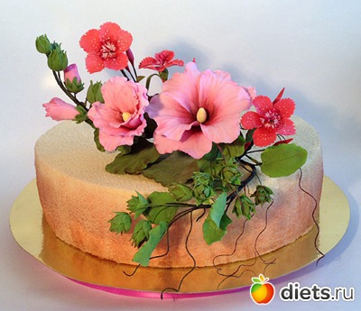 Цветы на торте долго рассматривала, пока дошло, что они из мастики, все думала, что они завянут