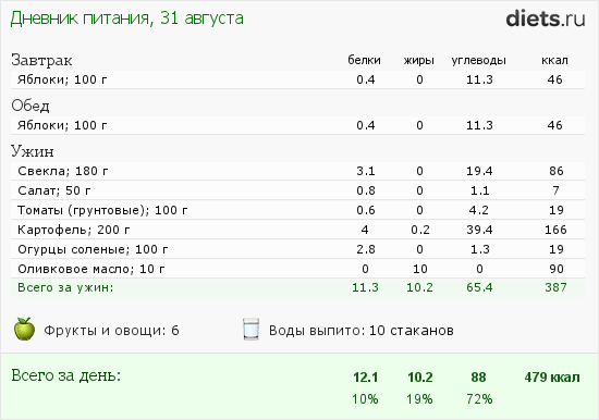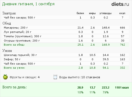 С небольшими отклонениями от диеты! Но в принципе, по каллорийности в норме.