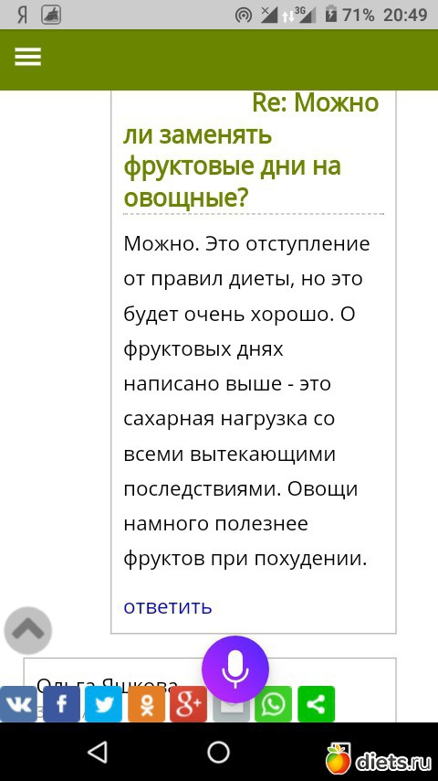 Вот,вычитала,что фруктовый день можно заменить овощным.