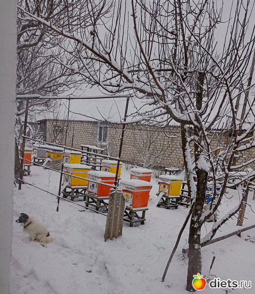 Пчёлки ещё на улице стоят в новых ульях из пенополистирола, делали сами