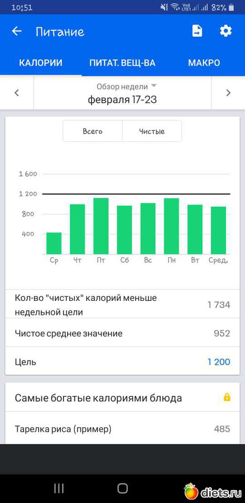 Прошу заметить, это "чистые" калории. У меня счетчик шагов в телефоне калории добавляет. Хотя с шагами на этой неделе беда. Все, кто с Урала, уже пожаловались везде в дневниках - у нас холода ужасные, -25..-35, да еще с ветром очень сильным, пронизывающим. До пятницы выше -20 не будет, а в субботу вроде потеплеет, жду не дождусь.