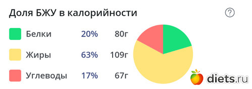 255 ккал, БЖУ 12,7/22,3/1,9 гр.