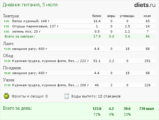фруктов вообще сейчас не ем! А из овощей за один приём 2 огурчика + 2-3 ст. ложки зелени.