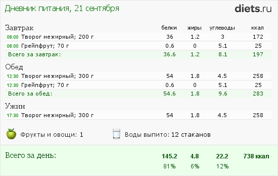Вот мой дневник питания! творог делала сама ! 3,2% ( МОЛОКО + КЕФИР )