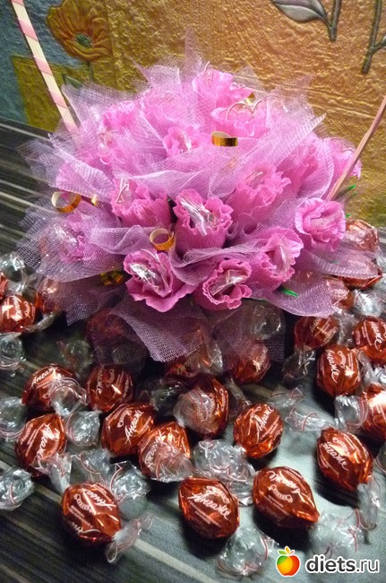 Вот, теперь я не ем конфеты, а делаю из них букеты))