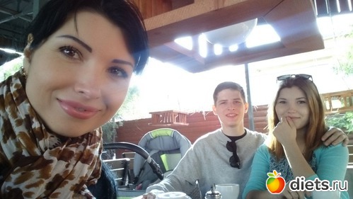 Встретили старших и вернулась с ними. По дороге посидели в кафе: