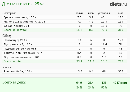 Прием пищи 5 раз в день (9-00, 12-00, 15-00, 18-00, 21-00 (за 2 часа до сна))