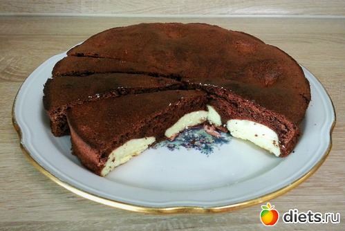 Сегодня пекла шоколадный пирог с творожными шариками. Кстати, неособо каллорийный. Внешне не совсем такой получился, как задумывала (у меня разъемная форма только большого диаметра), сверху предполагалась еще шоколадная помадка.. передумала варить, зато худее буду.