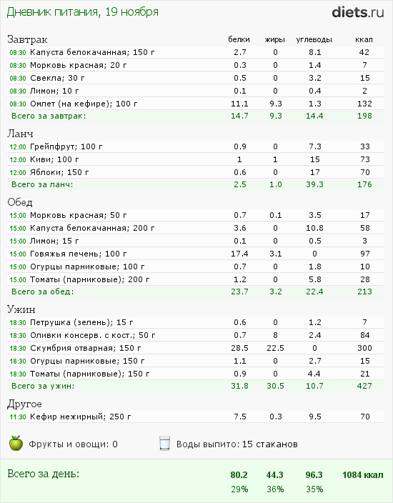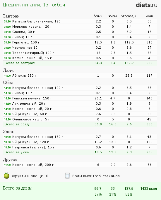 и вода.. в перерывах цикорное кофе 1 чашка и ромашковый настой.