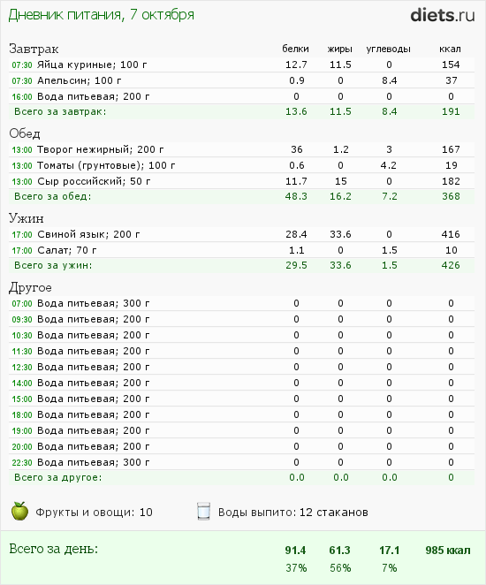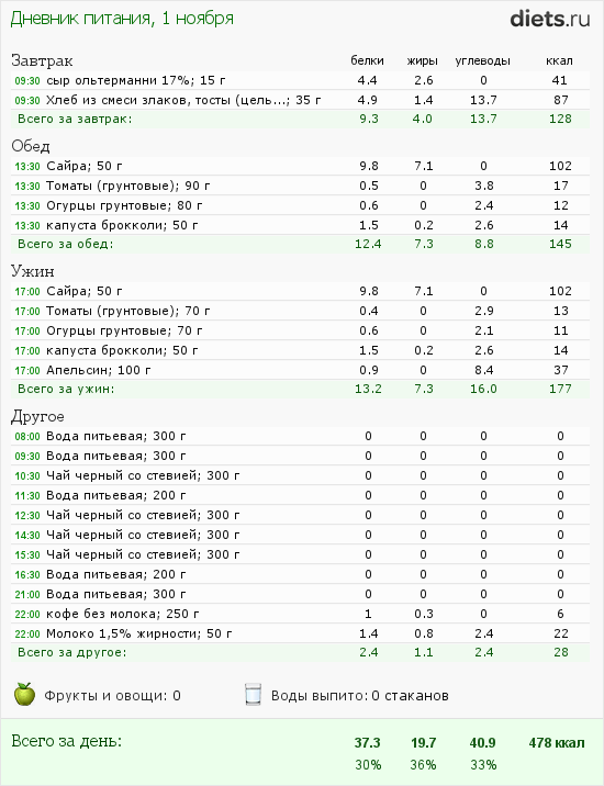 уф,я забыла про дневник,еле вспомнила в каком порядке ела и пила!