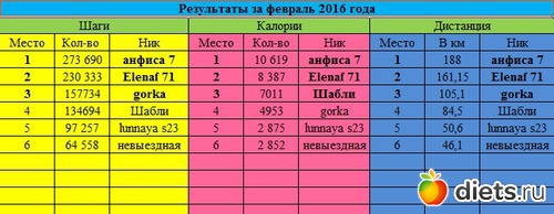 И суммированный результат за февраль в целом!!!! Шабли и gorka борются за третье место по разным позициям