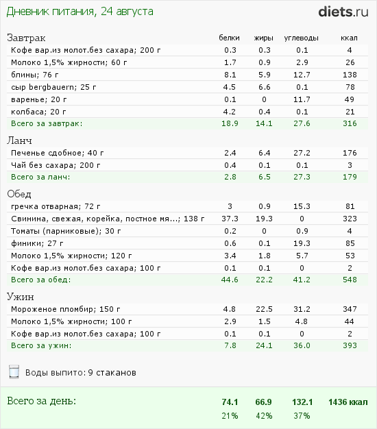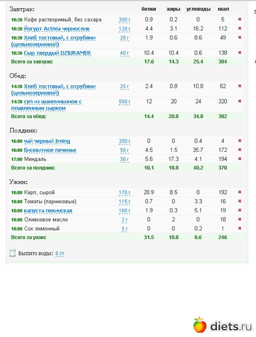 ну и конечно кофе\чай с сахзаменителем + 1,5 литра простой воды