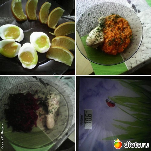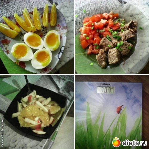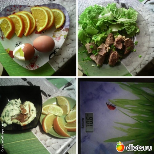 • Ужин: 2 вареных яйца, салат, 1 апельсин или грейпфрут