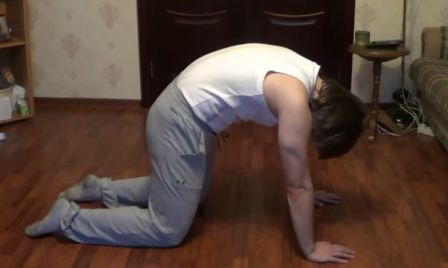 Упражнение для развития гибкости пришло из йоги. В данном случае представленная на фото позиция имеет название "кошка сердится"