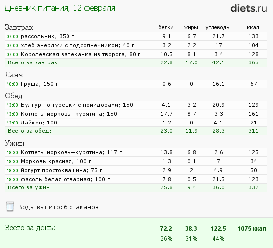 1. Я .обязательно записываю все, что ем в дневник питания..и у меня получилось вчера вот что