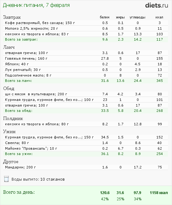 сегодня у меня 2 день 1 этапа по А.Ковалькову, вот внесла все в дневник питания