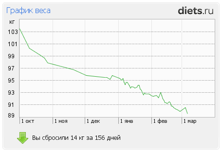 За январь и февраль ушло веса - 1 кг. Хотелось бы к 1 декабрю 2015 года снизить вес на 4 кг.