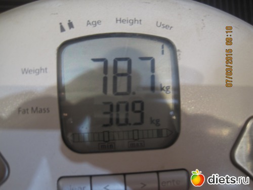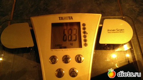 9 неделя: 68.3, 30.7% жира, 45.0 кг мышц, 48.6% воды