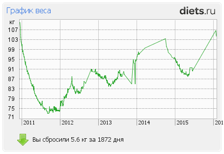 На сайте я с самого начала декабря 2010 года. Было все и стройнела на 37 кг за 7 месяцев, потом набирала, затем скинула 15 кг и опять набрала еще больше и т.д. Вот снова у меня вес 107 кг,/ 2 я степень ОЖИРЕНИРЯ