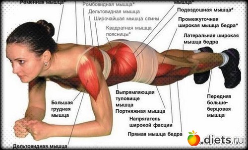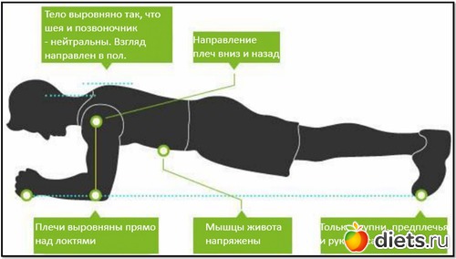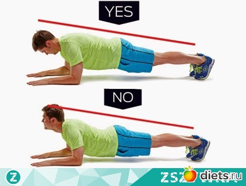 Для начала нужно встать спиной к стене, должно быть четыре точки соприкосновения: пятки, попа, лопатки, затылок. Проследи, чтобы ноги были выпрямлены, а живот не выпячивался наружу (надо максимально прижать тело к стене). Вот это положение нужно запомнить: постоять прочувствовать все свои мышцы. Теперь можно делать планку. Опираемся на локти и носочки, пятки вместе, локти точно под плечами, смотрим на свои кулачки. Стараемся максимально повторить позу у стены, бедра не должен провисать (если будут провисать, будет сильно чувствоваться напряжение в пояснице), бедра вверх выпячивать тоже не нужно (в таком положении стоять гораздо легче, но нужного эффекта не достигнете), голову вверх поднимать не нужно (идеально, смотреть на свои кулачки). Если есть кому помочь, можно положить шест на спину. Он должен лежать на 4-х точках: пятки, попа, лопатки, затылок. Это правильное положение тела в планке.