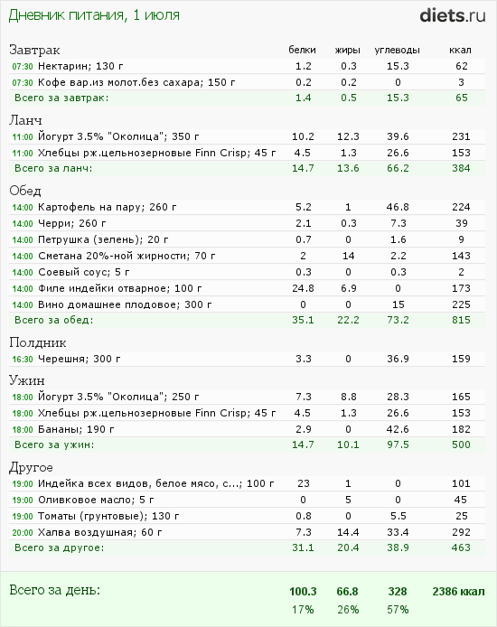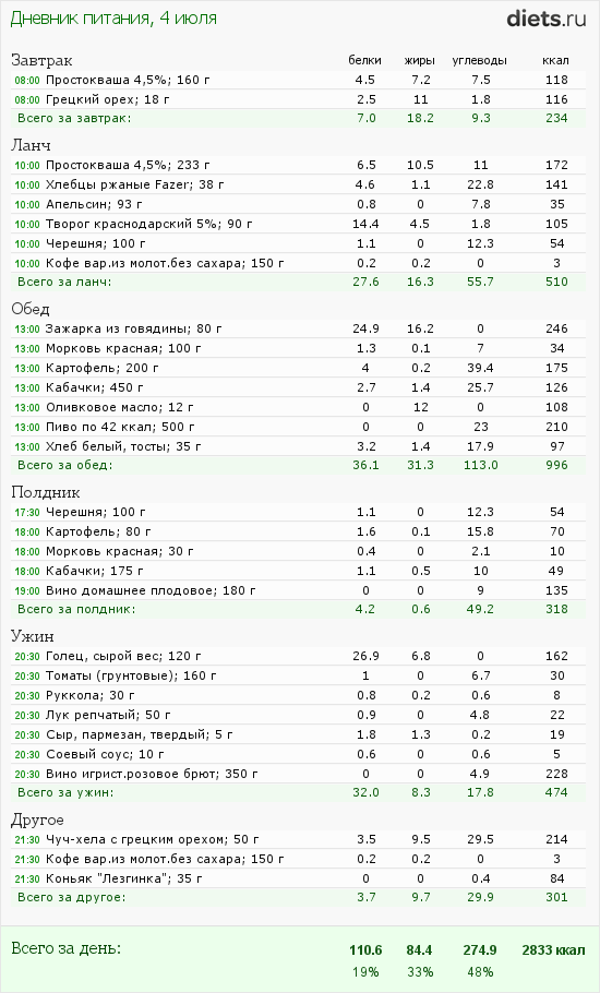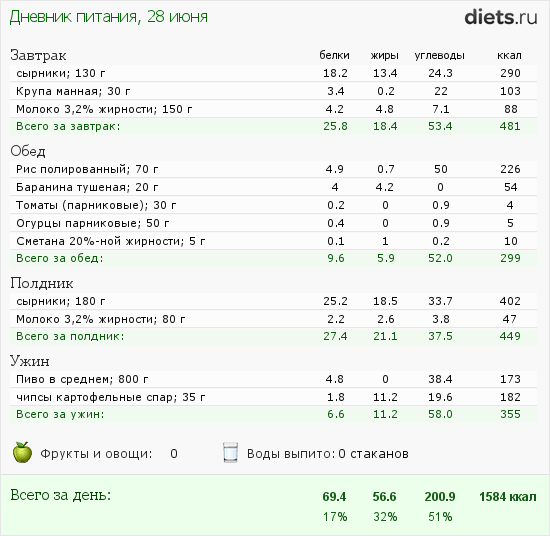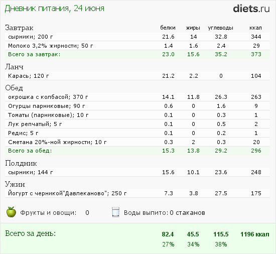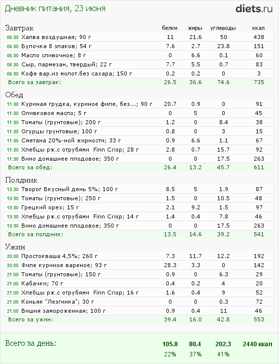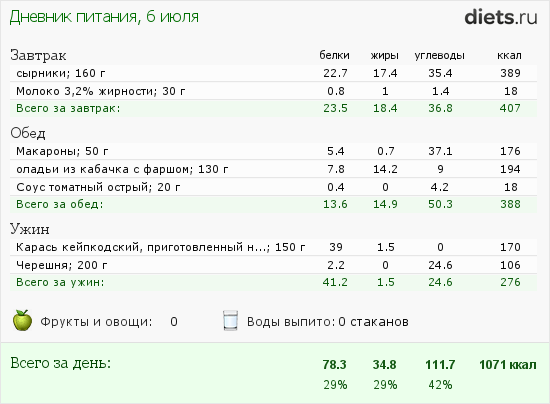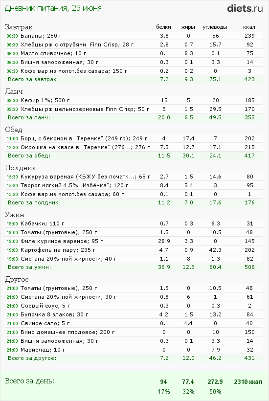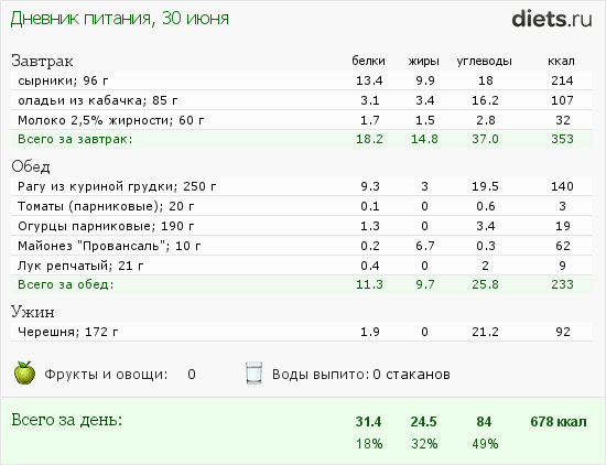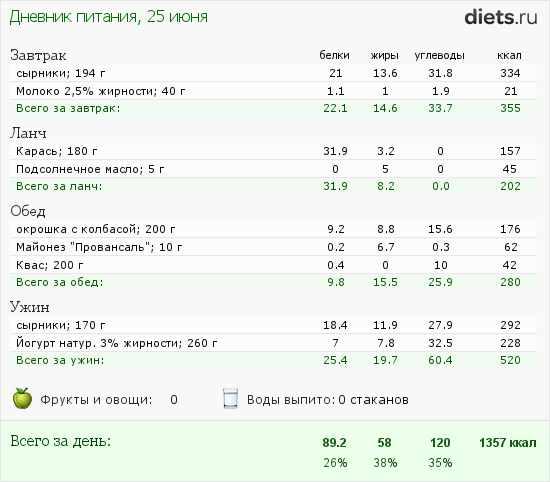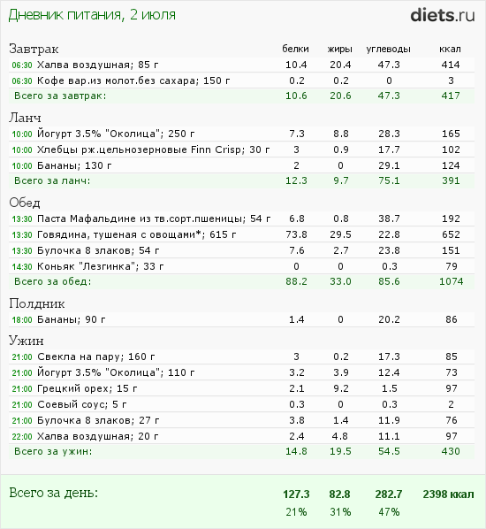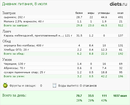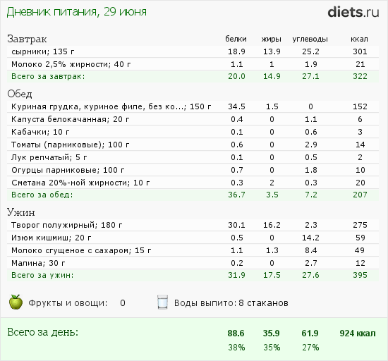 Сегодня маловато калорий, но после зажорных дней-даже хорошо.