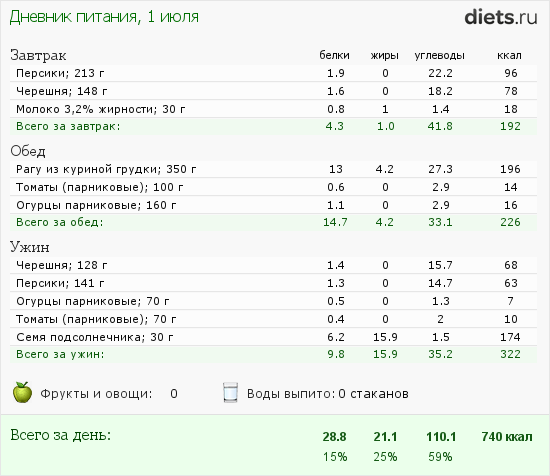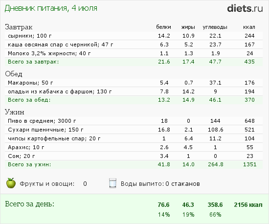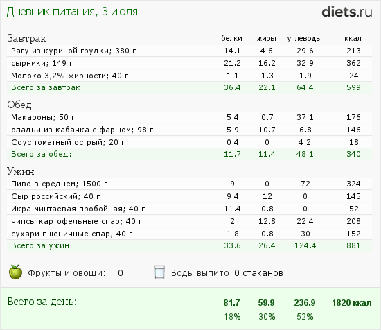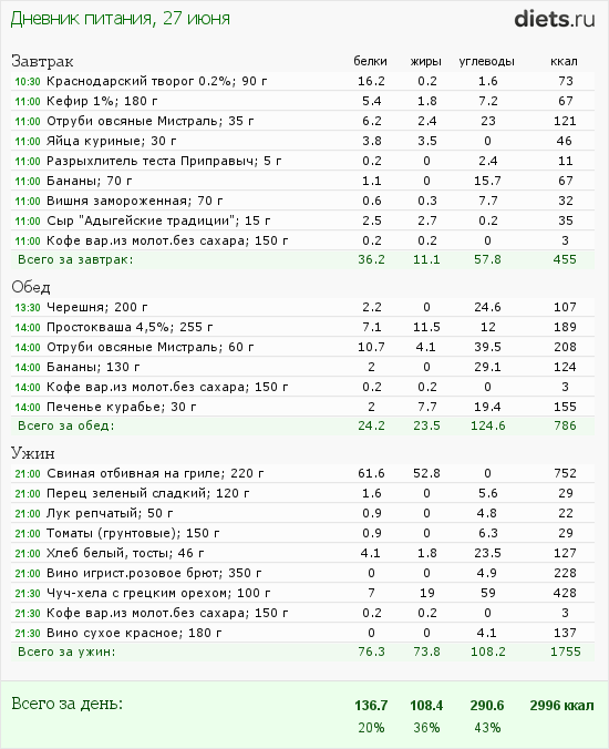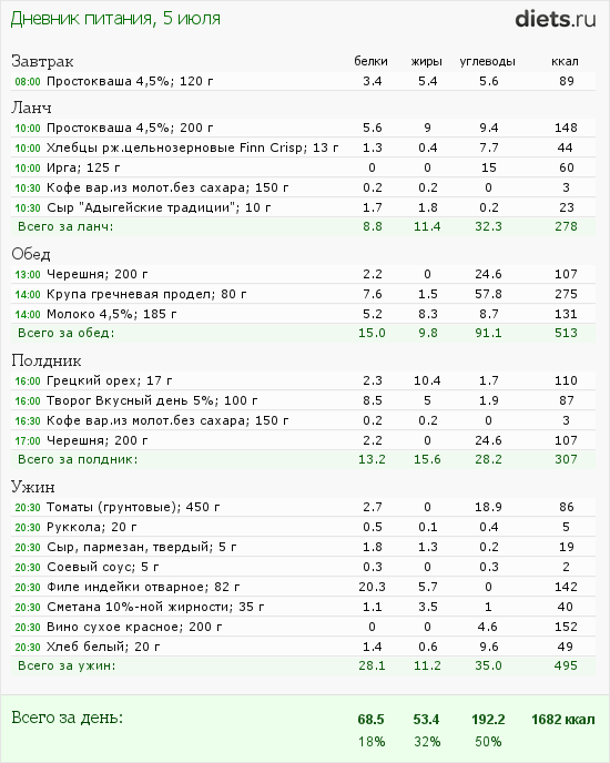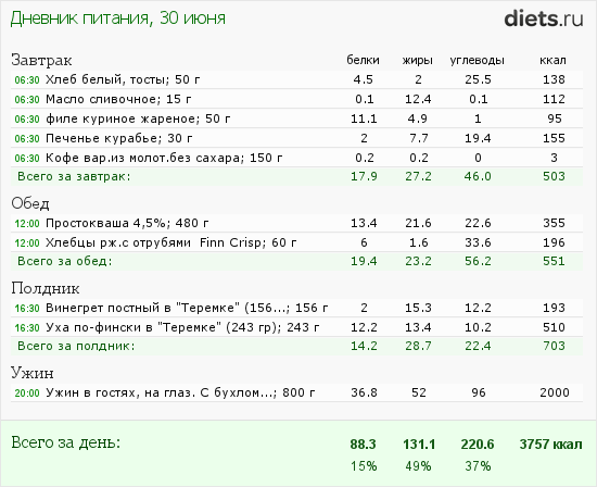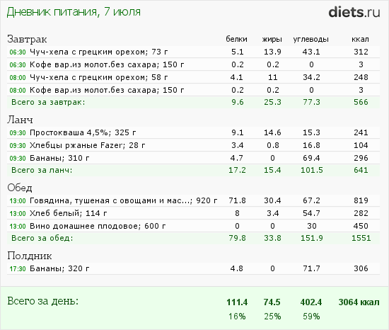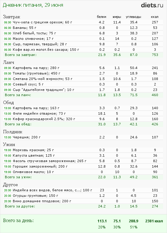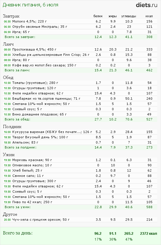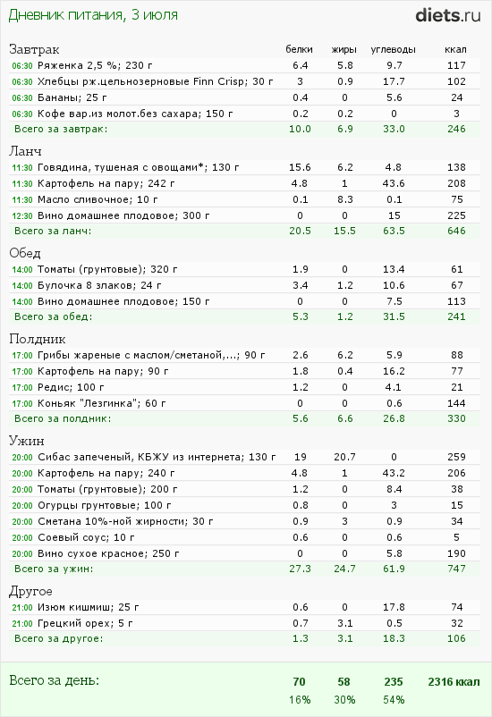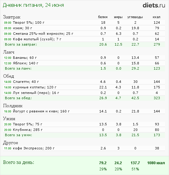 Сегодня маловато калорий, но после зажорных дней-даже хорошо.