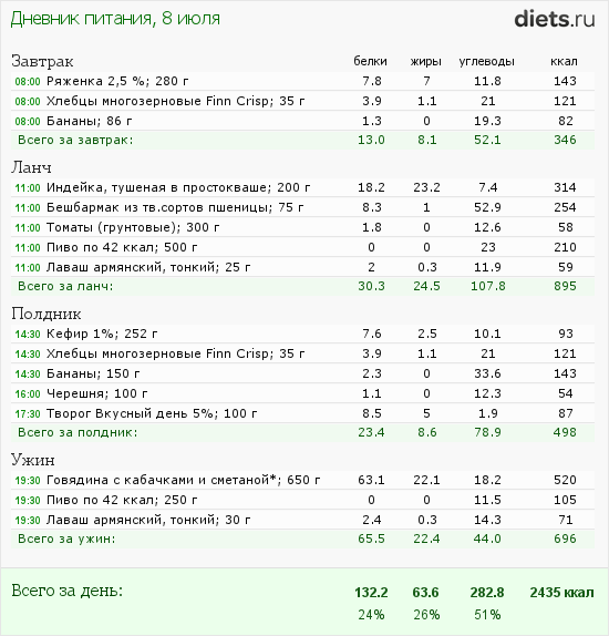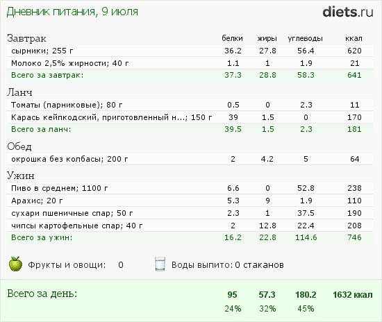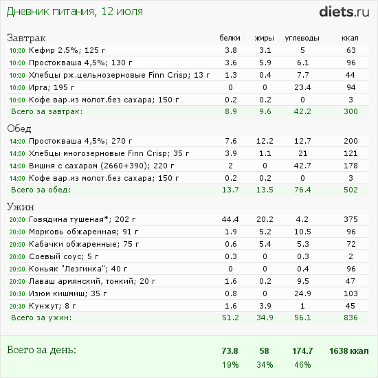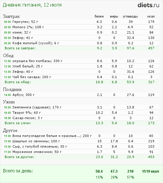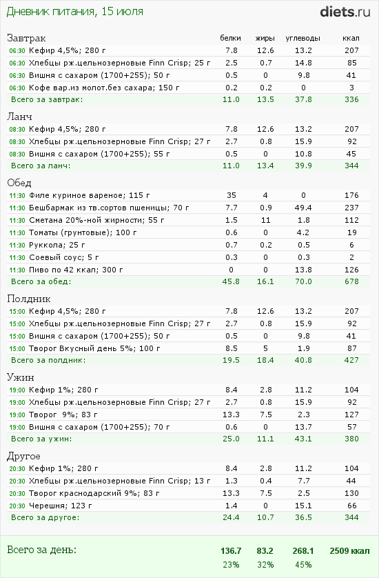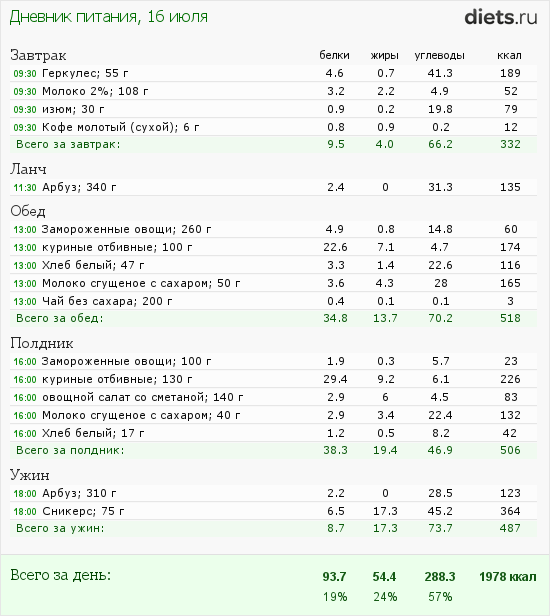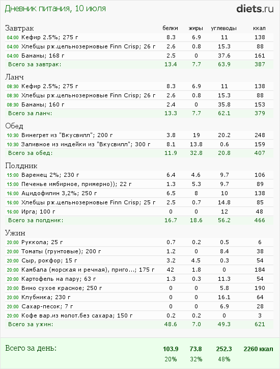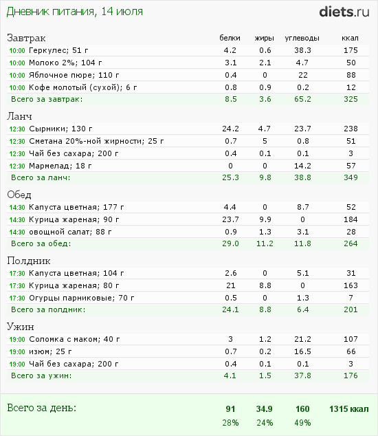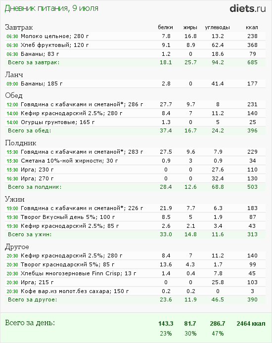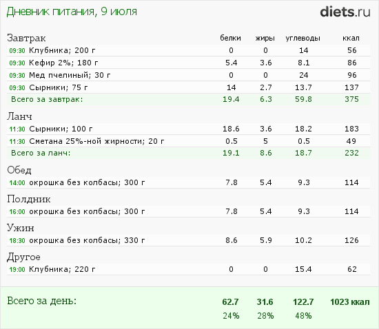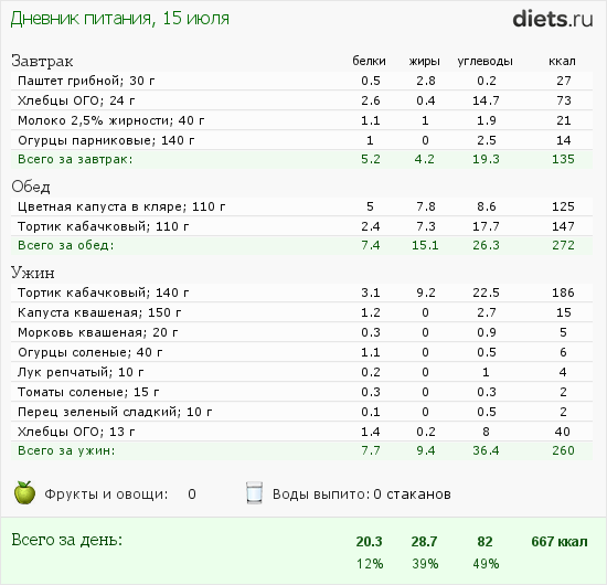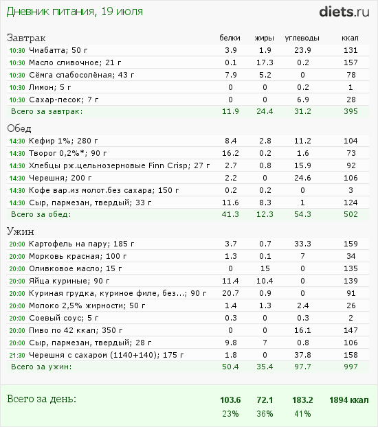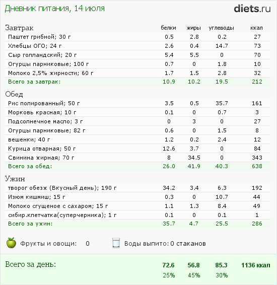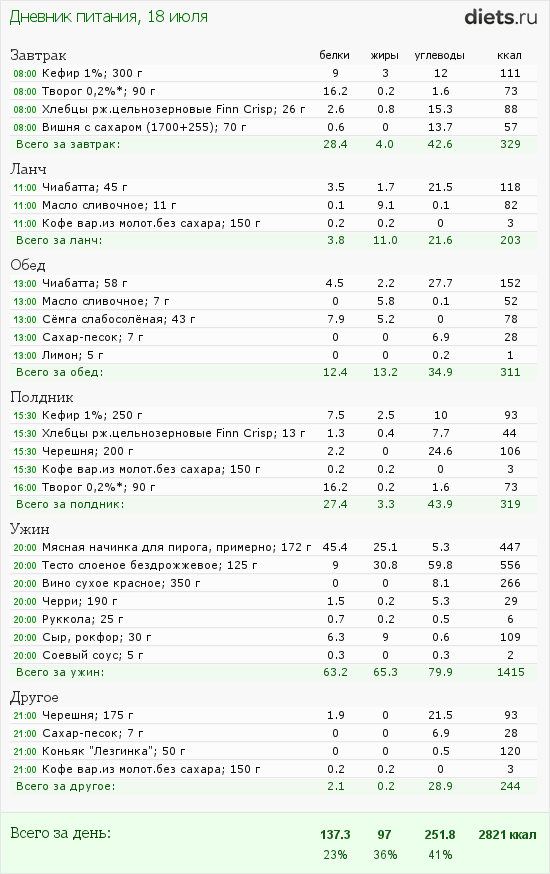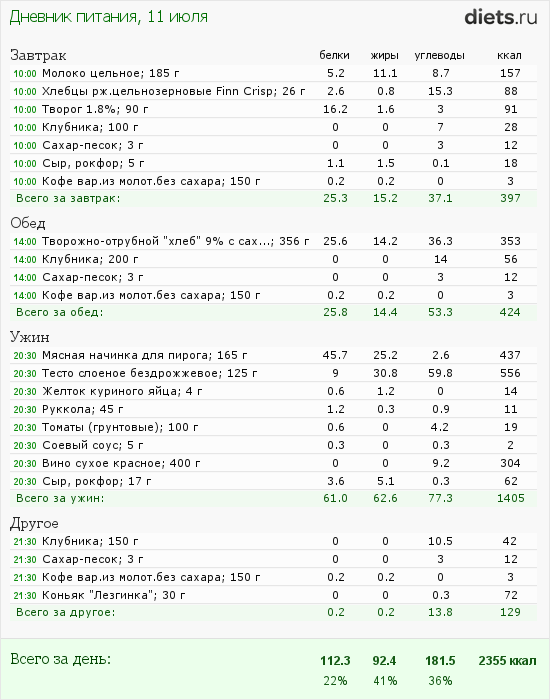 В субботу удалось впихнуть праздничный ужин в 1500 ккал. Так что для субботы суточный калораж вполне гуманный получился.