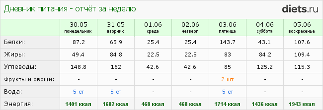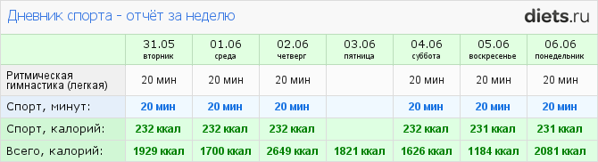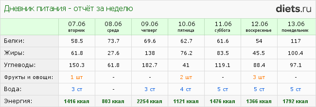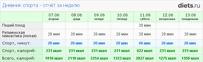 8. Разгрузочный день( пн, вс ) - 100 баллов