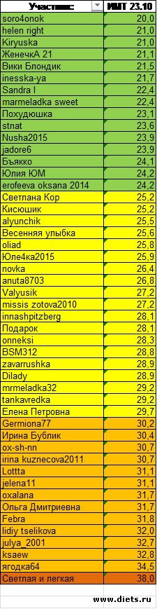 За сегодня выложу, когда все отметят вес в таблице клуба.