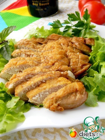 Куриное филе, приготовленное по этому рецепту, получается сочным, мягким и нежным, а готовится так быстро и просто. Такую курочку можно приготовить заранее, завернуть в фольгу и хранить в холодильнике. Можно подавать как на праздничный стол, так и к повседневной трапезе. Также приятно сделать с курочкой бутерброд на завтрак. Использование соевого соуса исключает добавление соли и разных приправ. Курочка получается красивой и ароматной.