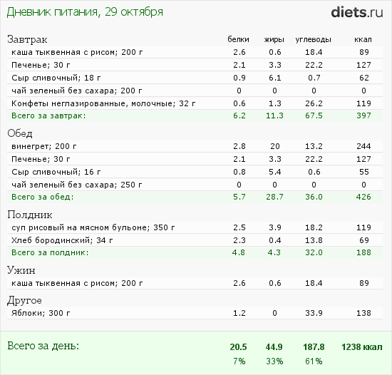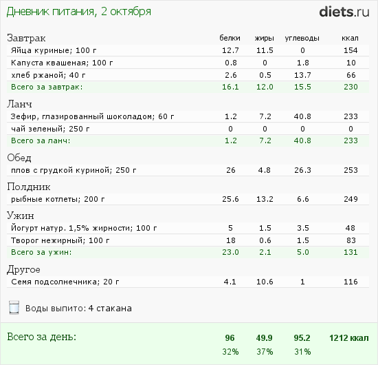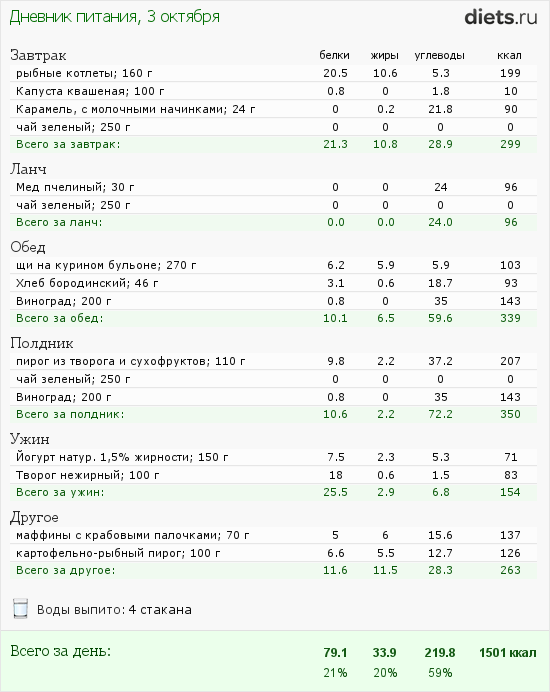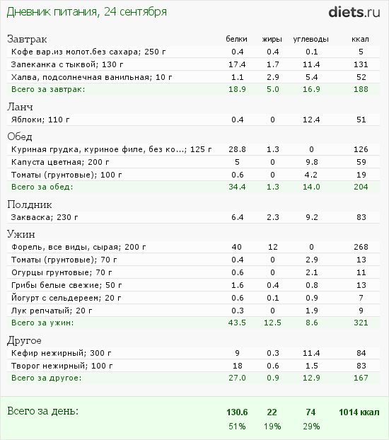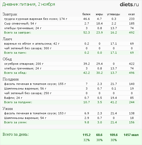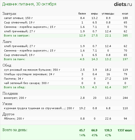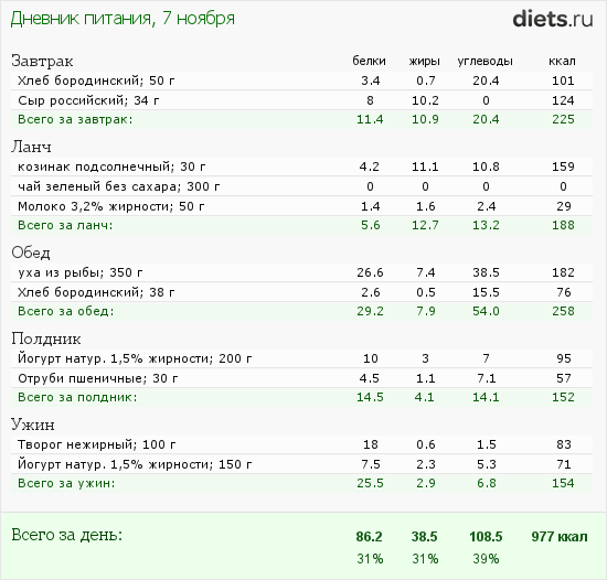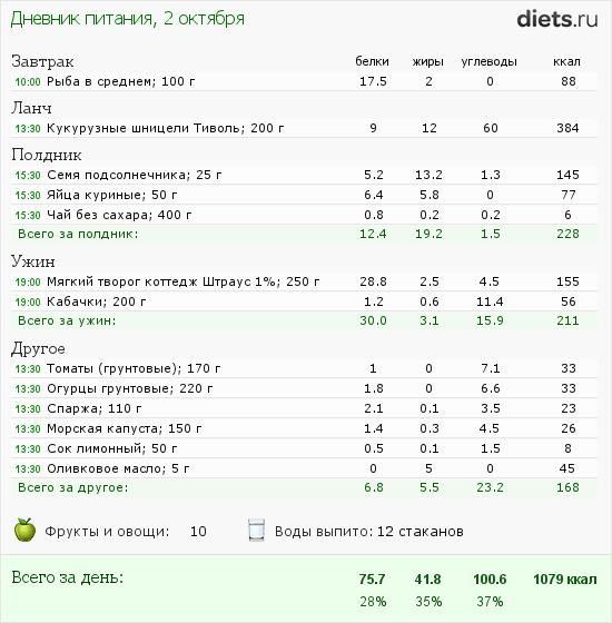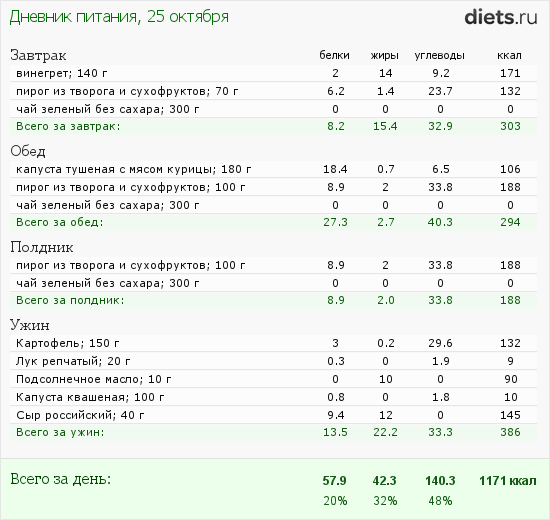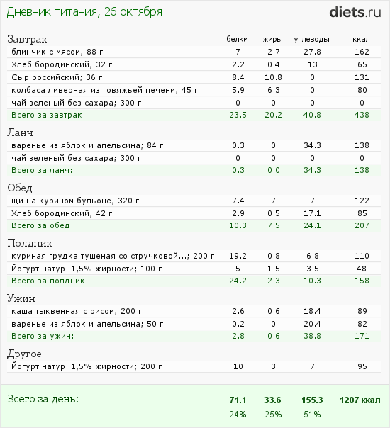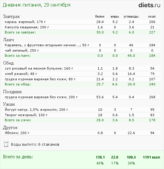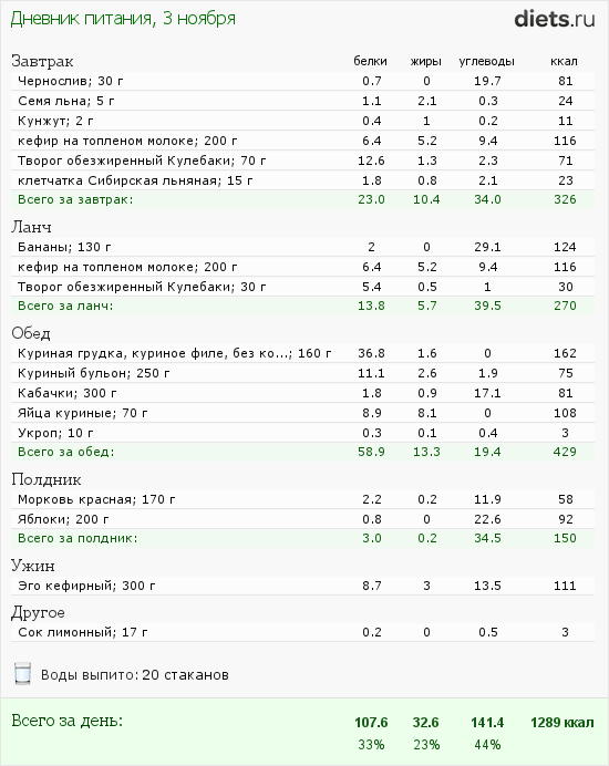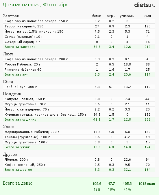 Что-то я переборщила с белками и не добрала углей, но вчера поздно домой приехала и некогда было готовить, считать, пришлось сегодня исходить из реалий холодильника))