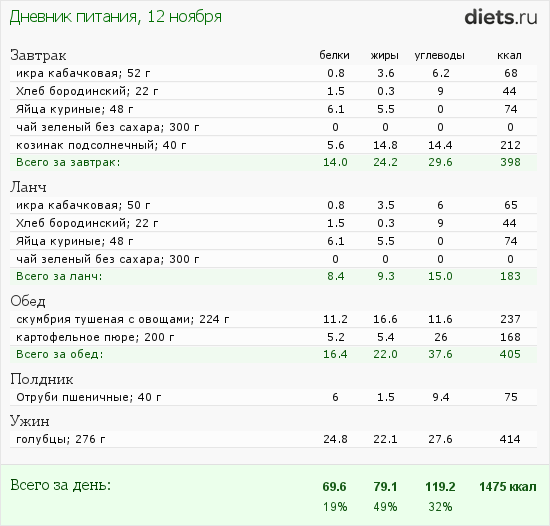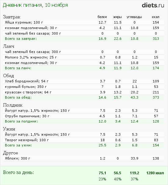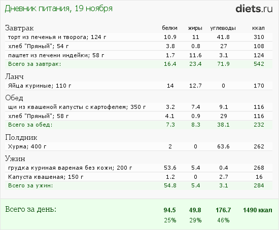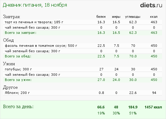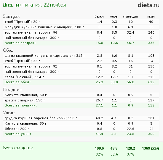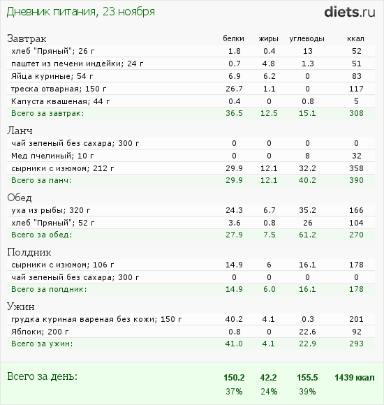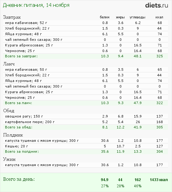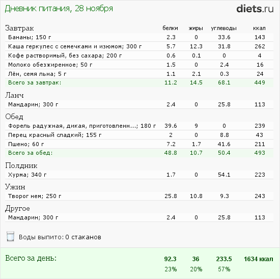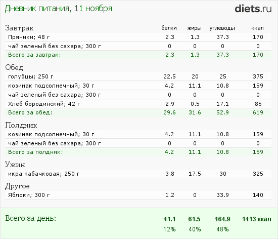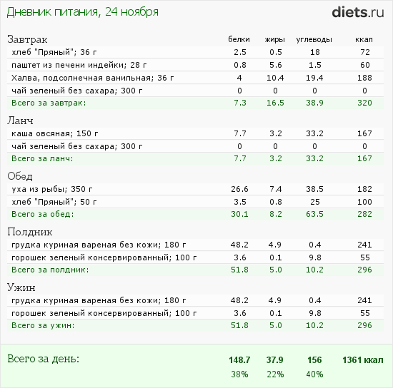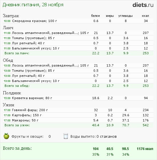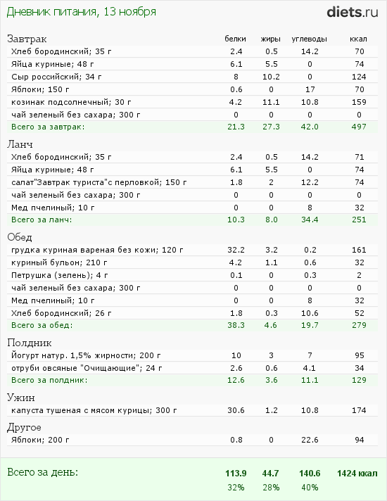 То, что записано как ужин - это супчик с вермишелькой, картошечкой и говяжьим фаршем, съеденный в два приема. Очень вккусненький получился Там еще приправы и один бульонный кубик, калорийность которого я не подсчитала, надеюсь - это мелочь
