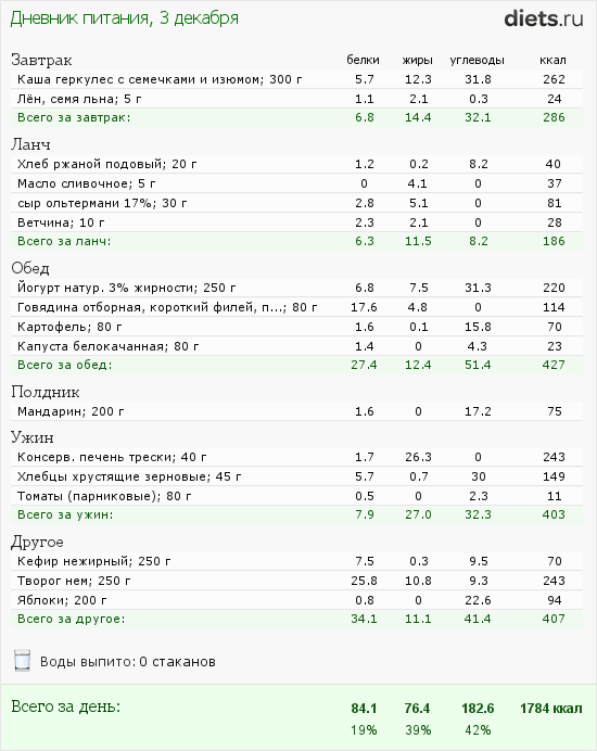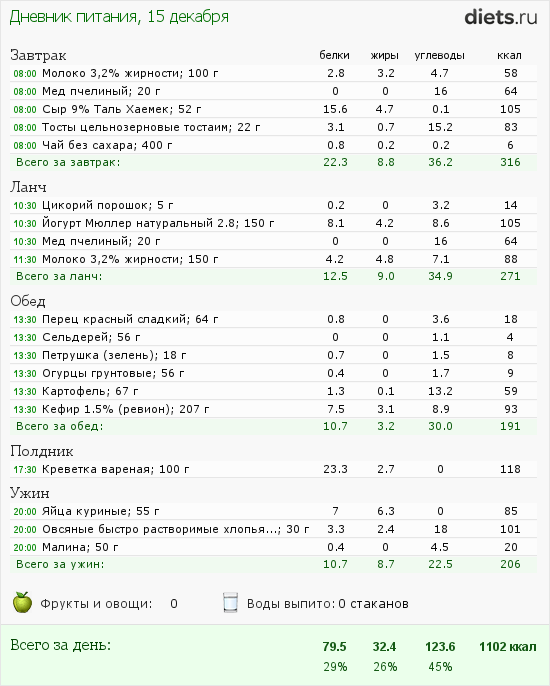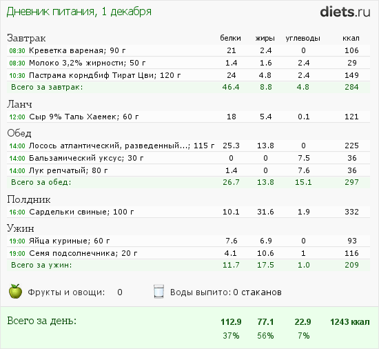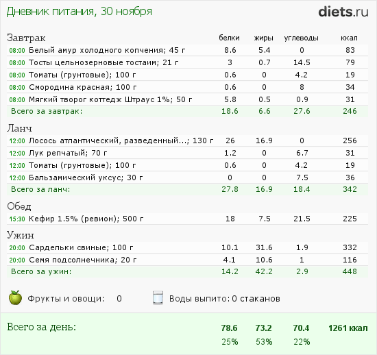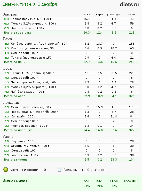 Только вот бутерброд с колбасой утром я бы заменила на куриную грудку с овощами.