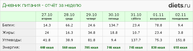 у меня тоже питание не очень разнообразное сегодня... жарила своим сырники- 3 штучки сьела... утром творог ела с йогуртом... вечером уже ине ела ничего-сырники в 16 час ела..уже если что то чаю попью... яблоко еще было...а в обед-куриные голени 2 шт и помидоры... вот если б не сырники- был бы хороший отвес завтра... но он и так видать будет-я ж отекла...